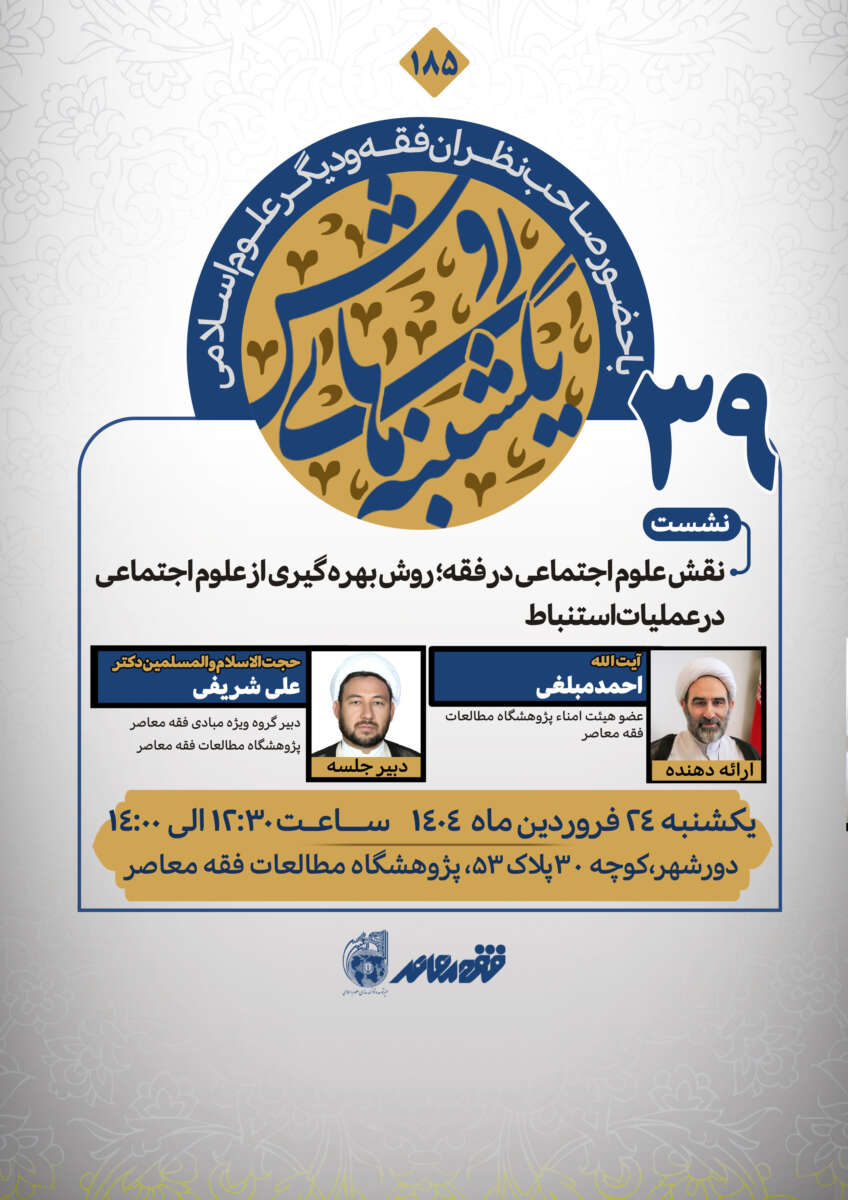 موضوع نشست : نقش علوم اجتماعی در فقه؛ روش بهره گیری از علوم اجتماعی در عملیات استنباط