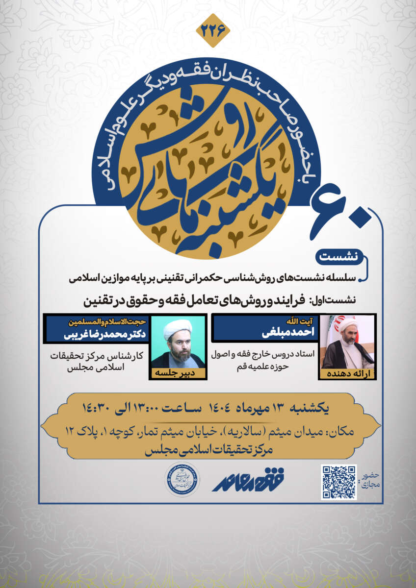 دبیر علمی: حجتالاسلام دکتر محمدرضا غریبی (کارشناس مرکز تحقیقات اسلامی مجلس)