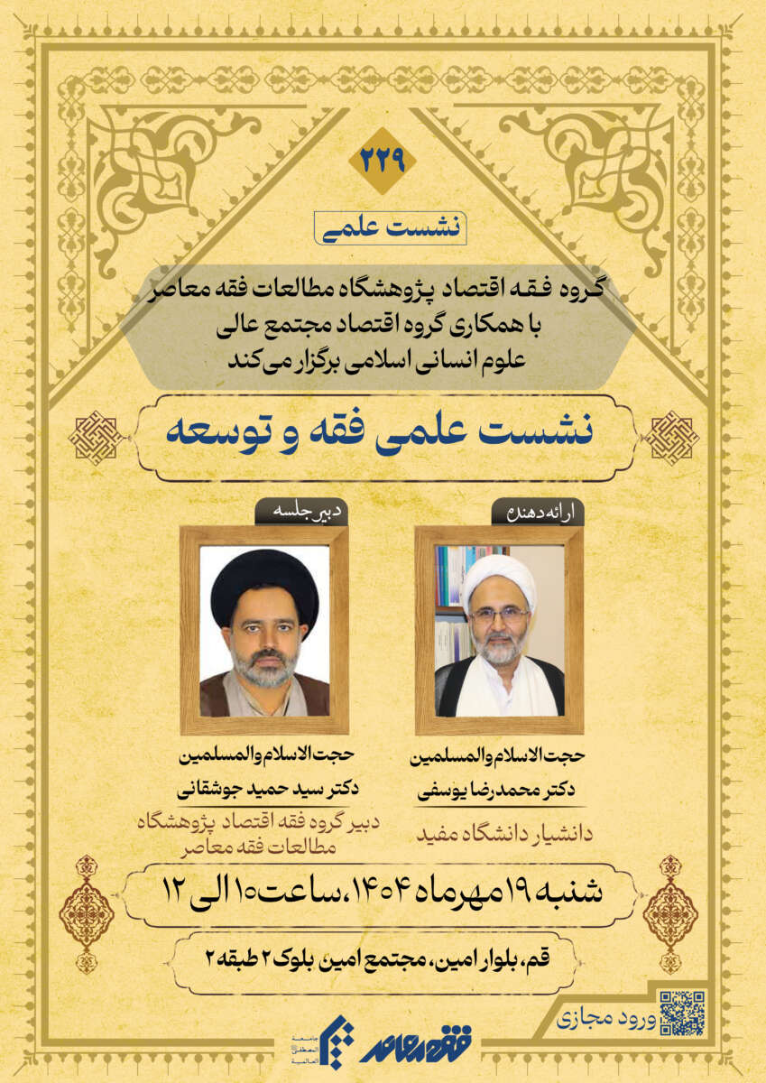 با همکاری گروه فقه اقتصاد مجتمع عالی علوم انسانی وابسته به جامعه المصطفی برگزار می‌کند: