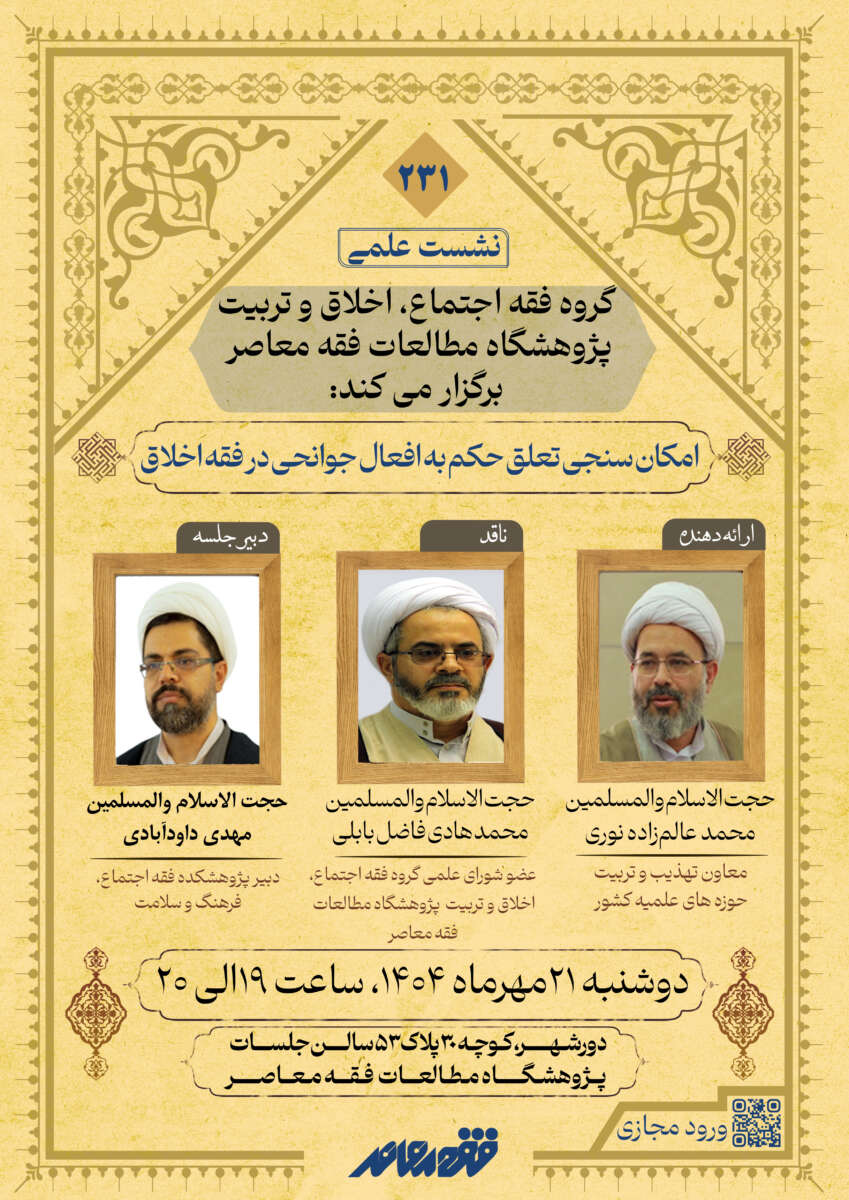گروه فقه اجتماع، اخلاق و تربیت پژوهشگاه مطالعات فقه معاصر برگزار میکند: