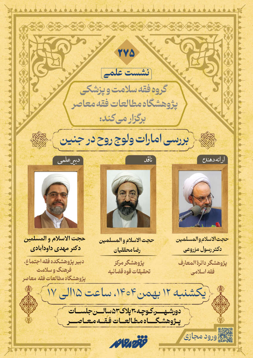مکان: قم، خیابان دورشهر، کوچه ۳۰، پلاک ۵۳، پژوهشگاه مطالعات فقه معاصر