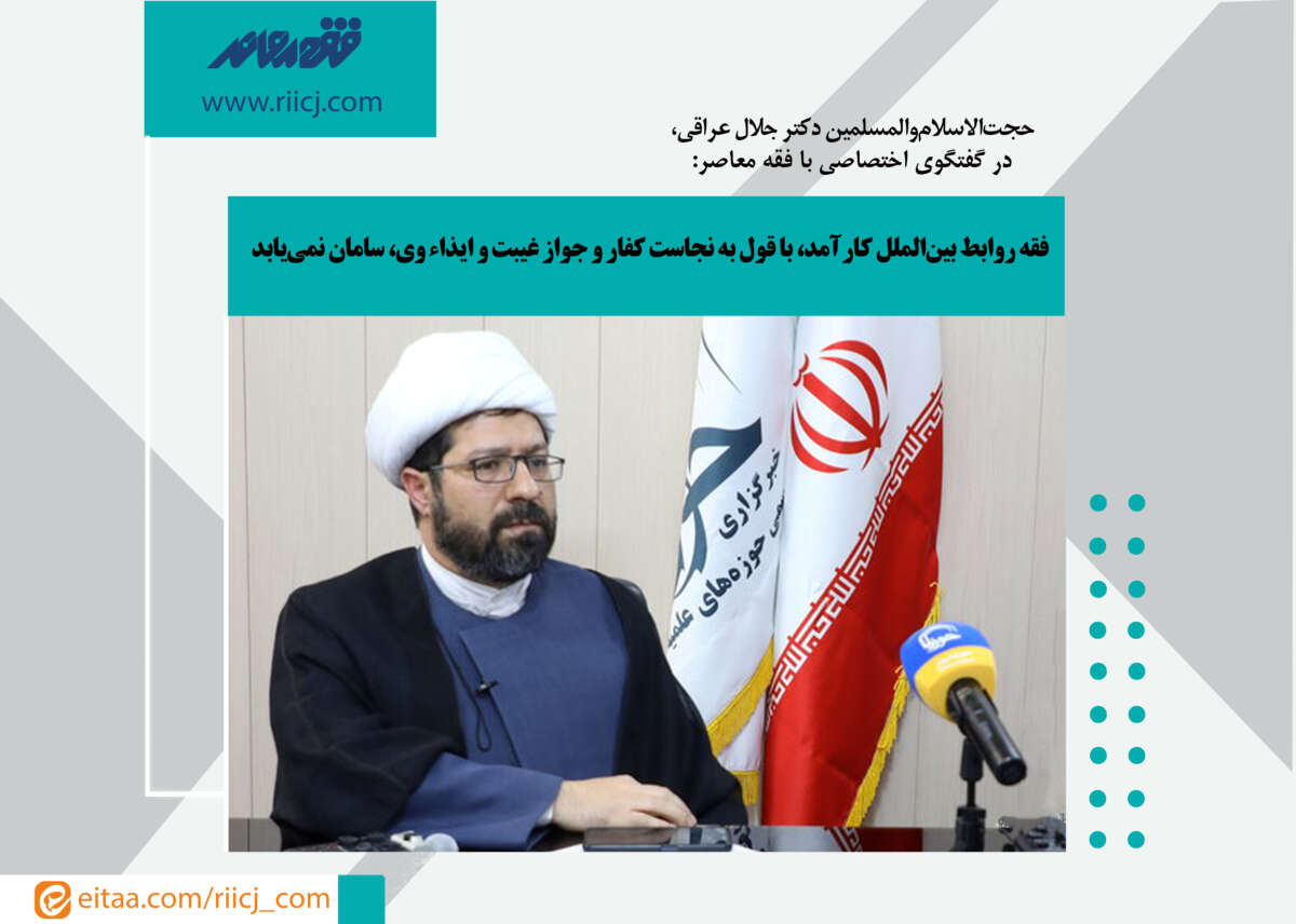 اشاره: شاید بتوان گفت بسیاری از نزاع‌ها و اختلافاتی که در احکام فقهی وجود دارد با مبانی و پیش‌فرض‌های آن مسئله یا آن باب فقهی بازگشت می‌کند. همین نکته اهمیت مبانی و پیش‌فرض‌های فقه روابط بین‌الملل را تأکید می‌کند. دراین‌رابطه با حجت‌الاسلام‌والمسلمین دکتر جلال عراقی، مدیر گروه فقه و اصول پژوهشکده عروه الوثقی گفتگو کردیم. وی با برشمردن مبانی و پیش‌فرض‌های این باب فقهی، یادآور شد که بدون بازنگری در برخی احکام قدیمی فقه پیرامون کفّار و مانند آن، نمی‌توان به ایجاد فقه روابط بین‌الملل کارآمد امیدوار بود. مشروح گفتگوی اختصاصی فقه معاصر با حجت‌الاسلام‌والمسلمین دکتر جلال عراقی، به‌قرار زیر است: