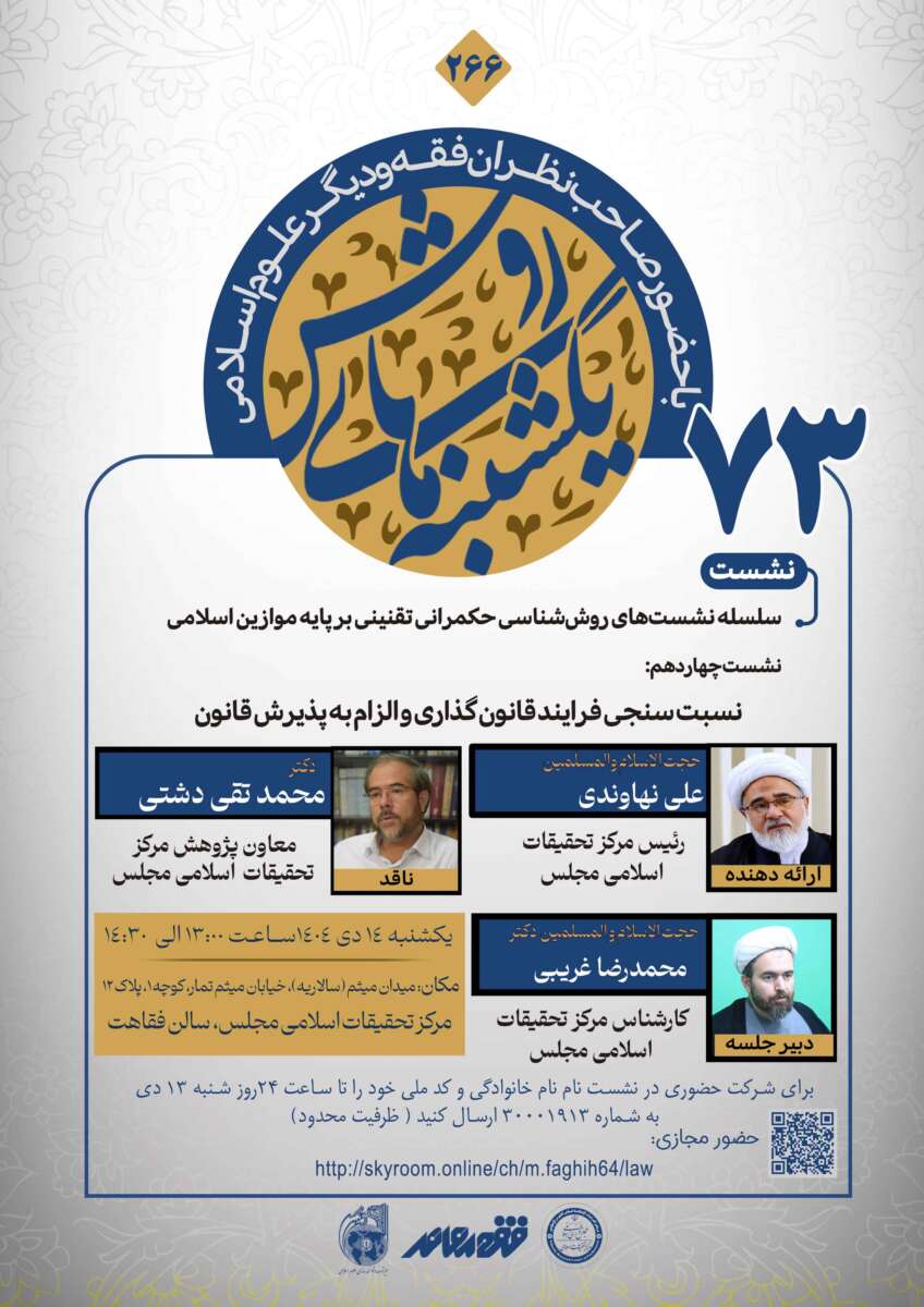 نشست چهاردهم: «نسبت سنجی فرایند قانونگذاری و الزام به پذیرش قانون»